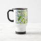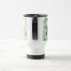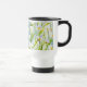 En resemugg dekorerad med mjuka vita och lavendel-vildblommor på en mjuk blågrön bakgrund, som ger en lugnande, naturinspirerad estetik perfekt för drycker på språng och en elegant present till alla som älskar botanisk konst.