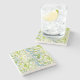 En underlägg prydd med ömtåliga vita och lavendel vildblommor på en mjuk blågrön bakgrund, som ger lugnande, naturinspirerad elegans till soffbord, matsalar och heminredning. En raffinerad, funktionell accent och en vacker present till alla som älskar botanisk konst.