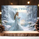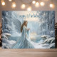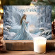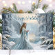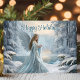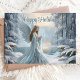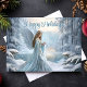 Detta eleganta julkort har en lugn vinterängel som står i en snöig skog och symboliserar fred och nåd under julen. Med mjuka blå toner och skimrande snö utstrålar denna design lugn och stillhet, vilket gör den till ett vackert val för att skicka hjärtliga julhälsningar. Perfekt för alla som uppskattar julens andliga väsen.