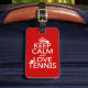 Detta läser behållalugn och kärlektennis, i stilen av affischen för klassikerbehållalugn. Det finns tennisbollar som balanseras på ord. Det är en rolig design som är populär med alla som älskar tennis. Underbara gåvor för likadana tennislagledarear, spelare och fläktar.