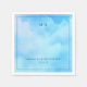 Denna bröllopsserviettdesign har en lugn akvarellbakgrund med mjuka blå nyanser som skapar en luftig och lugn atmosfär. Layouten är centrerad och balanserad och visar elegant serif-typografi för initialerna "M" och "K", tillsammans med namn och datum i en sofistikerad stil. Sköra molnliknande former smälter sömlöst in i bakgrunden och förstärker den drömlika estetiken. Perfekt för att tillföra en touch av elegans på din speciella dag, fångar denna design essensen av fred och firande.