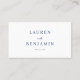 Det här bröllopskortet har ett charmigt vintertema med stiliserade tallar i olika nyanser av blått, vilket skapar en lugn och festlig snöig skogsmiljö i bakgrunden. Det centrala vita utrymmet ramas in av en tunn marinblå linje, som erbjuder anpassningsbara områden för namn och bordnummer, kompletterat med elegant kursiv typografi. Vattenfärgstekniken ger en mjuk, fantasifull touch, som frammanar en mysig och festlig atmosfär perfekt för säsongens bröllop.