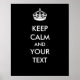 En uppspelning på den vintage brittiska slogan, Behålla Lugn, som görs i ett äkta vitt teckensnitt med Behålla Lugn krona för en roligts- och coola-design på svart, redo för dig att anpassa med ditt eget ord. Leta efter många andra Lugnar och utformningar av Behållan i min Zazzle-butik.