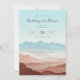 Denna bröllopsinbjudan har en lugn och elegant design med en bakgrund i akvarellstil som visar lagerformade berg i mjuka pastellskuggor i blått, rosa och brunt. Den minimalistiska men ändå sofistikerade layouten använder subtila övergångar och mjuka tonförskjutningar för att skapa en lugnande atmosfär, förstärkt av gott om negativt utrymme för läsbarhet. Elegant kursiv stil framhäver namnen, medan rena serif-teckensnitt ger ytterligare detaljer, vilket gör det både estetiskt tilltalande och informativt. Perfekt för par som söker en lugn och varm stämning, sätter denna inbjudan tonen för en minnesvärd fest.