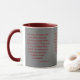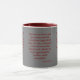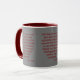 Den här tvåtonsversionen av mugg har ett färgat typsnitt där maronens brev visar "Luke 12:33" KJV-bibelskriptvern över en grått-bakgrund. Den här versen refererar till kapitlet Bok i Luke 12:e som visar 33:e versen i detta bibelcitat från Kung James-bibeln. Behållaren och fälgen är glaserade i motsvarande färg i 11 eller 15 uns stora mikrovågsugn och säker keramikkonstruktion av diskmaskiner.