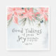 Idén att citera julservetter skildrar ett vackert vattenfärgat rosa poinsettia med röda hollbär och gräs grenar. Bible Verse Luke 2:10, "Bra tids of underbar joy, which shall be to all people" *