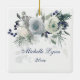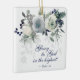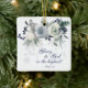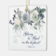 I den inspirerande skriften jul-keramiska prydnadsämnet i personlig framställs en elegant vit och marin blommigt med ro vattenfärg. Den har en del av Bible Verse Luke 2:14, "Glory to God in the Top!" Anpassa baksidan med namn och datum eller valfri information.
