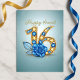 Se på detta fantastiska Sweet 16-kort, en design där siffran "16" lyser med en utsökt mosaik av strålande blå och glänsande gyllene ädelstenar. I dess mitt, en fantastisk blå ros, formad med kristallinsk precision, vecklar ut sina kronblad bredvid ömtåliga, ädelstensfärgade blad, allt mot en mjuk, lysande bakgrund.