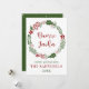 Grön och röd julkrans kort, med texten God Jul på lulesamiska: Buorre Javla.
