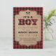 Det är en pojke! Fira den lilla pojkens ankomst med den här babyduschinbjudan till lumberjack. Det pappra kraftutseendet och buffelplaid mönster gör det till perfekten inbjudan för ett skogskapitel eller en skogsköljning! Och på grund av de stora pojkarna tittar, skulle inbjudan uppskattas mycket av hubbierna och andra manliga inbjudna.