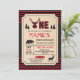 En lumberjack-inbjudan. Röd och svart utskrift.