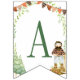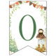 Whimsical lumberjack med skogsaccenter och en rödplansbanderoll.