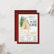 Vild ett första födelsedagsfest inbjudan med teepeet och träd på en rustik lumberjack buffalo-bakgrund. Den här söta vilden en första födelsedagsinbjudan är lätt att anpassa för ditt evenemang genom att helt enkelt lägga till din information. Det här är en tryckt design utan glitter, folie osv.