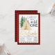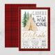 Wild one födelsedagsinbjudan med teepee och träd på en rustik lumberjack buffalo-rutig bakgrund. Denna söta wild one-födelsedagsinbjudan kan enkelt anpassas för ditt evenemang genom att bara lägga till dina uppgifter. Detta är en tryckt design utan riktig glitter, folie etc.