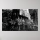 Tjugotvå Lumberjacks är i underlägget av en stor Sequoia 1884. Observera de svamlande nedskärningarna runt basen i träd. Det är här de har satt in ett schavolleplanker för att stå på när de svepte sina axlar.