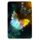 Nattglödande fjärilar på svart abstrakt. Luminös fjäril.