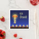 Lycklig Diwali Illustration: En glansig Diwali-lampa med röd dija (kopp-formade indianska oljerampor) med gräns som prydnadsämne på nattetid himlar och hälsning skriven på sanskrit.