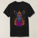 Den här skjortdesignen visar på ett stort lampa, med en slående blandning av vibrerande färg och krångligt mönster. Lamas ansikte, färgad i livliga blå och lila, står vackert i kontrast till den eländiga orange och gult som krona och ram har sin form. Den detaljerade ramen skapar ett mätflöde av färg från lamamas ansikte till dess päls, som övergår genom skuggor av rosa, lila och rött, ge en känsla av rörelse och energi. Lamas ögon är uttryckligt och omges av ett utvecklat mönster som ytterligare förstärker det mystiska och regala utseendet. Flamor slickar uppåt från Lamas nacke, integreras sömlöst med det flytande linjerna i päls och tillför ett dynamiskt och eländigt inslag till utformningen. Luminös färg och detaljerad illustration skapar en påfallande visuell påverkan, skapar denna t-shirt ett fristående biet. Perfekt för fläkt av unika, konstnärliga och fantasintemeterade kläder. Den här designen erbjuder både stil och intriger.