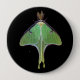 Den här knappen har den otroliga lunadmånaden, en kalk-grönt, en marktisk mättnadsmask i underfamiljen Saturniae. Med en våglängd på upp till fyra och en halv tum är denna vackra varelse en av de största i Nordamerika. Den här vuxen har just dykt upp ur kokongen och väntar på barken i en träd-koffert för att torka och härdas. Vuxnorna äter inte eller har munnar. De lever bara i en vecka och dyker upp som vuxnor bara för att kamma. Med kalkgrönt färg och utpräglade ögonspetsar är detta en mycket mystisk, magisk tittar.