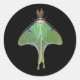 Det här klistermärket har en otrolig måne, en kalk-grönt, en marktisk mättnadsmask i underfamiljen Saturniinae. Med en våglängd på upp till fyra och en halv tum är denna vackra varelse en av de största i Nordamerika. Den här vuxen har just dykt upp ur kokongen och väntar på barken i en träd-koffert för att torka och härdas. Vuxnorna äter inte eller har munnar. De lever bara i en vecka och dyker upp som vuxnor bara för att kamma. Med kalkgrönt färg och utpräglade ögonspetsar är detta en mycket mystisk, magisk tittar.