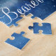 Lunar Himlar Full Moon Celestial Galaxy Watercolor Design, med Nattsahinande stjärnor, och Glowing Måne Design på en lyxig marinblå, Blek Blue och tips på lila vattenfärgen struktur. Med Typsnitt för modern typografi. Trendigets magiska design - Personlig Bröllop kommer att bli vår Ring Bearer frieri Pussel! ~ Kolla min butik för att se hela bröllop-svit för den här designen!