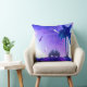 This throw pillow features a surreal digital artwork of a motorcyclist riding through a dreamy purple landscape. With palm trees, a crescent moon, and a comet streaking across the sky, this piece of Palestinian art adds adventure and tranquility to any living space
