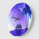 Decorate your home or office with this unique wall clock featuring the Lunar Mirage design. Inspired by surreal Palestinian digital art, this clock blends functionality with artistic elegance