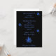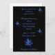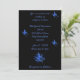 Utformningen har en brinnande nattdräkt i himlar med dubbla stjärnor och snurrande galaxer, som härjas av den eteriska skönheten hos en lysande månmö i blå nyans med Bride och Groom, datum och ytterligare information.
