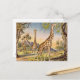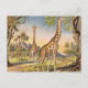 Den gulliga vintagekonstverkvisningen en giraff som upp till sträcker, äter några löv av ett träd