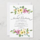 Vackra gulter med vattenfärg och svartvit lunchinbjudan till möhippa med ett handskrivet typsnitt och samordnande blommigt bakåt.