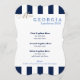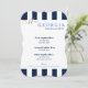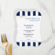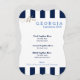 Skapat i ett bedövande, stripe stil för att få en ny roligt för skönhetstävling- eller lunchéevenemanget. I klassisk marin blå och vit rand på fram- och baksidan är vit på brans kvalitet papper. Text skriven i mittområdet. Kantlinje med finare-parentes. Vi har skapat mallen åt dig, bara ändrat informationen till din egen på högerna av skärm i urvalsmenyn. Anpassa ytterligare om du vill genom att ändra färg för papper markering, text eller text, färg i bakgrunden, stilar eller ladda upp en egen bild. Fantastiskt val av receptioner, pension party, skönhetstävling party, bollar, luncher, evenemang, bröllop eller veteranevenemang.