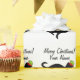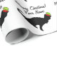 Lustig katt med papper julomslutning. Anpassningsbarnas presentrullar med svart silhuettdesign för djur. Lägg till namn (husdjur). Vit eller anpassningsbar färg.