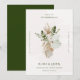 Trendigets bröllopsinbjudningar innehåller en abstrakt av olika tropiska botaniska ämnen - handflatan löv, pampasgräs, blommor och blommor, och till och med faux guld accents. Alla visas i en mjuk neutralt med texturerad bakgrund, med en djup grönt färg på baksidan och en modern textlayout.