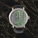 Snyggt manar vaktare med vita siffror som innehåller fotobilden av en lush, evergreen, barer-skog i Stillahavets nordväst. Markera klockan från flera stilar.