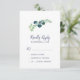 Denna lush grey och eukalyptus simple OSA kort är perfekt för en elegant bakgård bröllop. Den moderna botaniska designen har en fantastisk vattenfärgsblå eukalyptus och grönt löv.