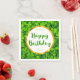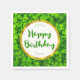 pappra servetter från grattis på födelsedagen med en färsk våghöjdsdesign som visar sig utanför fält av klöver löv i en lush naturlig grönt med små små, små vatten-droppar. I mitten finns ett vitt ram med FAUX guld-folie gräns. Anpassa med namn som födelsedjas födelsedag.