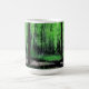 Sol-ljusfilter genom träd löv skapar en mjuk grönt glöd.