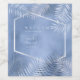 En färg-palett i trendig i skuggor från grått i stål till vindsorblått; mousserande geometriska ramar och elegant-designlayouter utgör grunden för denna spännande bröllop-svit. Oavsett om du planerar ett destinationsbröllop eller bor nära hemmet, gör den här känsliga designuppsättningen handflatan löv ett val att fånga öga. Den samordnande etiketten för vin som visas här innehåller en mall som gör det enkelt att lägga till ett välkomstmeddelande, namn och bröllop. Sök i ID956 om du vill se andra delara och färg-alternativ för den här uppsättningen.