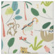 Vitaktig utformning av mönster som ger liv i lush-djungelväxter och djurillustrationer, inklusive tiger, papegoja, lutning, apa och orm.