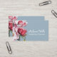 Lush magnolias bröllopsfixaren affärskort med vit typsnitt och blå grått bakgrund.
