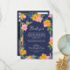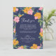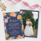 Lush Pink Yellow Flowers Dark Blue Wedding Photo Tack Kort