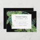 Den här utformningen har vattenfärgstropiska blad, inklusive lush, grönt monstera och handflatan löv, som omger ett rektangulärt vitt ram mot svart bakgrund. Anpassa den efter att du har valt att skriva den i ett svart sans serif-teckensnitt. Den omvända sidan är helsvart.