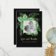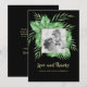 Anpassa dina tackkort med ett favoritfoto och en personlig i bröllop. Det här tropiska temat tack för att du har ett foto med kvadratiska ramar (kvadratfoton fungerar bäst i den här utformningen) som omges av lush banans löv och handflatan fronds i vattenfärgshaden av grönt. All text kan anpassas enligt dina önskemål. Ett exempeltackmeddelande som du skickar på baksidan av kortet som du kan redigera med din egen ordalydelse eller ta bort om det inte behövs.