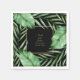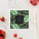 En vilt papper napkin från elegant bröllop eller party med lush tropiska banans löv och handflatan fronder runt en svart kvadrat ram som innehåller personligens text. Här visas en exempelbrid och en triomens namn och bröllop-datum. Du kan anpassa det med valfri text. Det är ett fantastiskt val för ett badbröllop, ett destinationsbröllop, luau bröllop eller bröllop med ett tropiskt tema. Det fungerar också utmärkt för förlovningsfester, cocktail party, möhippor, luaus eller andra evenemang med tropiskt tema.