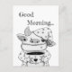 Ett lustigt svart och vitt monster i hand plockade och ord "bra morgon"