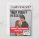 Låt din kreativitet springa vild och dina egna tabloidrubriker med den här roliga tidningen spara datumkortet. Alla viktiga detaljer har presenterats på ett skandalöst sätt! Dina gäster kommer att bli nitade. Framsida - Ditt foto är huvudbilden, med tidningen inslag kan du anpassa: tidningen namn, bröllop stad och datum, din egen lustiga rubrik. en underrubrik på en röd bakgrund med namn och "Spara datum!" och en pratbubbla som raderar "artiklarna" på baksidan. Tillbaka - "sidan 2" - du har ytterligare två artiklar att anpassa med mer information och foton. Sidrubriken är "Bröllop i århundradet". Det här och all text kan anpassas till stil. På sidans grund uppmanar en banderoll dina gäster att besöka webbplatsen bröllop, som också finns med som en QR-kod, som du kan ta bort om du är rädd för att dina gäster är rädda för QR-koder på grund av tabloidnyheter.. Information - Tidningspapper som tonas ut och läggs ut på ge visuellt. Ha roligt med din personlig tidning! All text och färg kan anpassas i Design Verktyg.