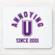 Har du en doktorsexamen i Vara-A-Pain-In-the-Grund-ology? Om så är fallet är denna underbara Annoying U (You) Mousepad i lila perfekt till använda runt syskon eller någon annan du kärlekar för att irritera! Med en minnesstund i universiteten skulle den här humoristiska typografiska designen göra en underbar gåva till dig själv eller till vilket irriterande folk du än känner. Enkel att anpassa, lägg till det år du föddes eller annan personlig som du väljer. Klicka på knappen "Anpassa" för att hitta ytterligare anpassningsalternativ.