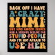 Lustigt mimi-citattecken: Tillbaka har jag en galen mimi hon har ilska problem och en allvarlig ogillande för stupida människor, och jag är inte rädd för att Använda henne. Fantastisk ger dig med groovy och säger: låt din galna mimi skratta, för barn, flickor, pojkar, kvinnor, manar, pappa, moster, mamma, syskonbarn, son, dotter... Bästa familj, rolig utrustning för galna Mimi som kärlek ropar och citerar. Perfekt sarkastiskt kläder för alla som kärlek hans, hennes galna imi. för födelsedag, mors dag, kvinnodag, föräldrars dag...