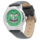 Lustigt barn klocka med grönt monstermonstret ansikte tecknad design. Personligens handklockor för barn. Unik födelsedagspresent för pojkar och flickor. Skapa en till speciell son, barnson, systerson, lillebror, syskon, dotter, barndotter, kusin, vän, barn, barnbarn, liten eller storsyster osv. Roligt djurets teckning-design med siffror. Även trevligt som Julklapp för Helgdagarna. Omfattar svart färg-band. Stor ögon och fullt av vassa tänder.