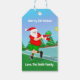 Jultomten ses spela pickleball, en vältyckt racketsport, på en humoristisk julklapp märkre. Ett underbart tillägg till din nuvarande påse eller andra föremål.